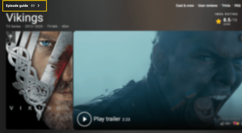 1) start at the main title page for the television show. (For example, see the TV series Vikings (2013-2020).
